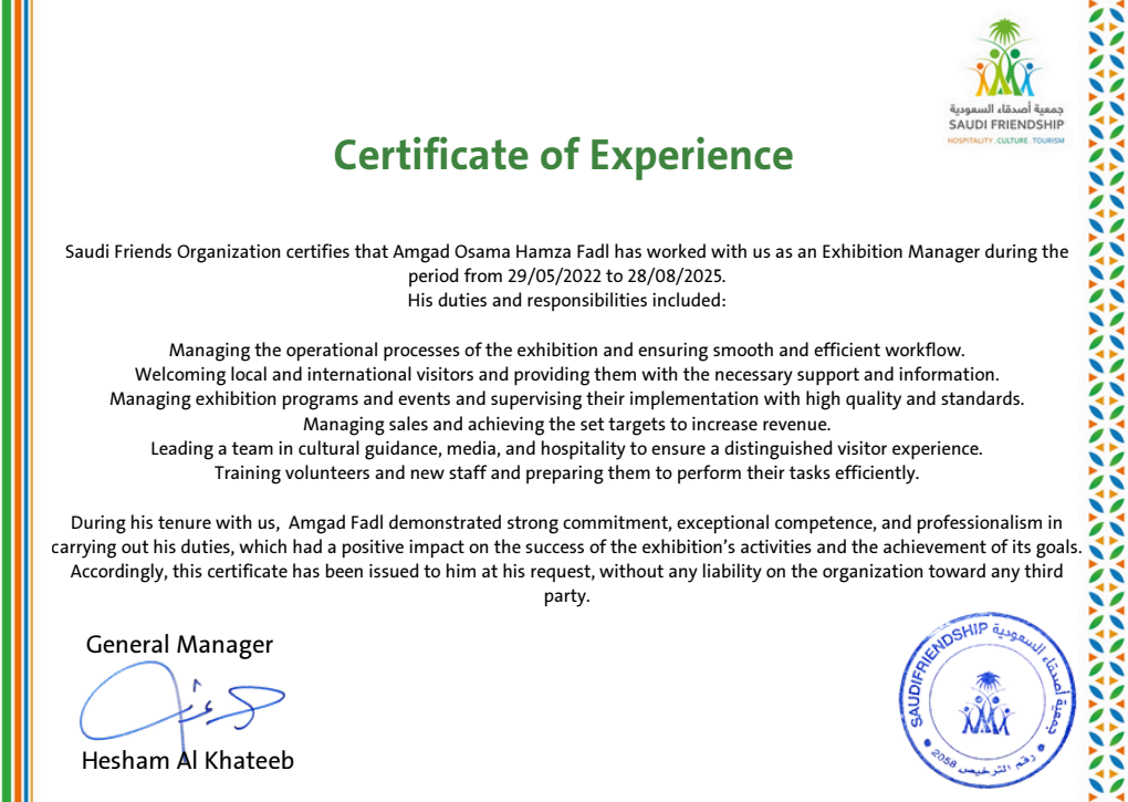I am a Professional Operations Manager specializing in the management of exhibitions, large-scale events, and luxury hospitality, with over 6 years of experience in leading multidisciplinary teams and delivering exceptional operations management and guest experiences. I am distinguished by being trilingual (Arabic, English, and Russian), which enables me to build effective communication bridges with high-level international delegations from diverse cultural backgrounds.